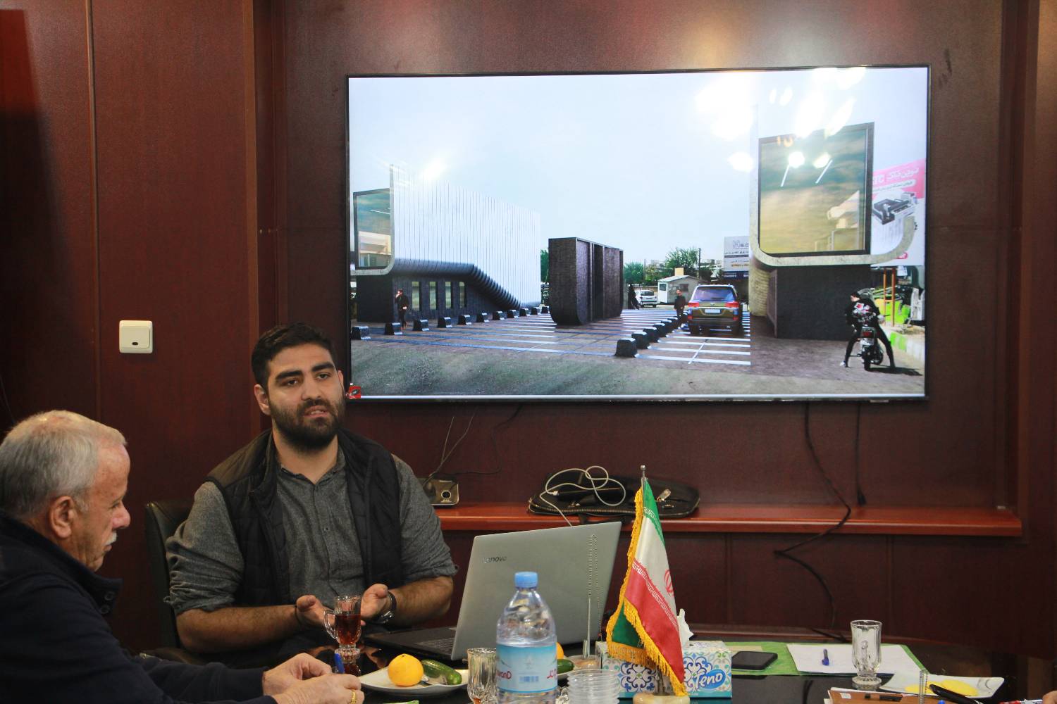 در ادامه محمد جواد عبدالحسینی(مهندس معمار) که به طراحی سر درب ورودی جدید شرکت پرداخته بود با تغییراتی در طرح ارائه شده جلسه پیشین سعی کرد، بحث هویتسازی شرکت را در آن لحاظ کند و با ارائه توضیحاتی نسبت به سوالات اعضاء، نسبت به مقاومت طرح در برخوردهای احتمالی با تریلی و سایر خودروهای سنگین پاسخهایی را ارائه دهد که در ادامه با نظرسنجی از اعضا با اکثریت آراء تصویب شد.
